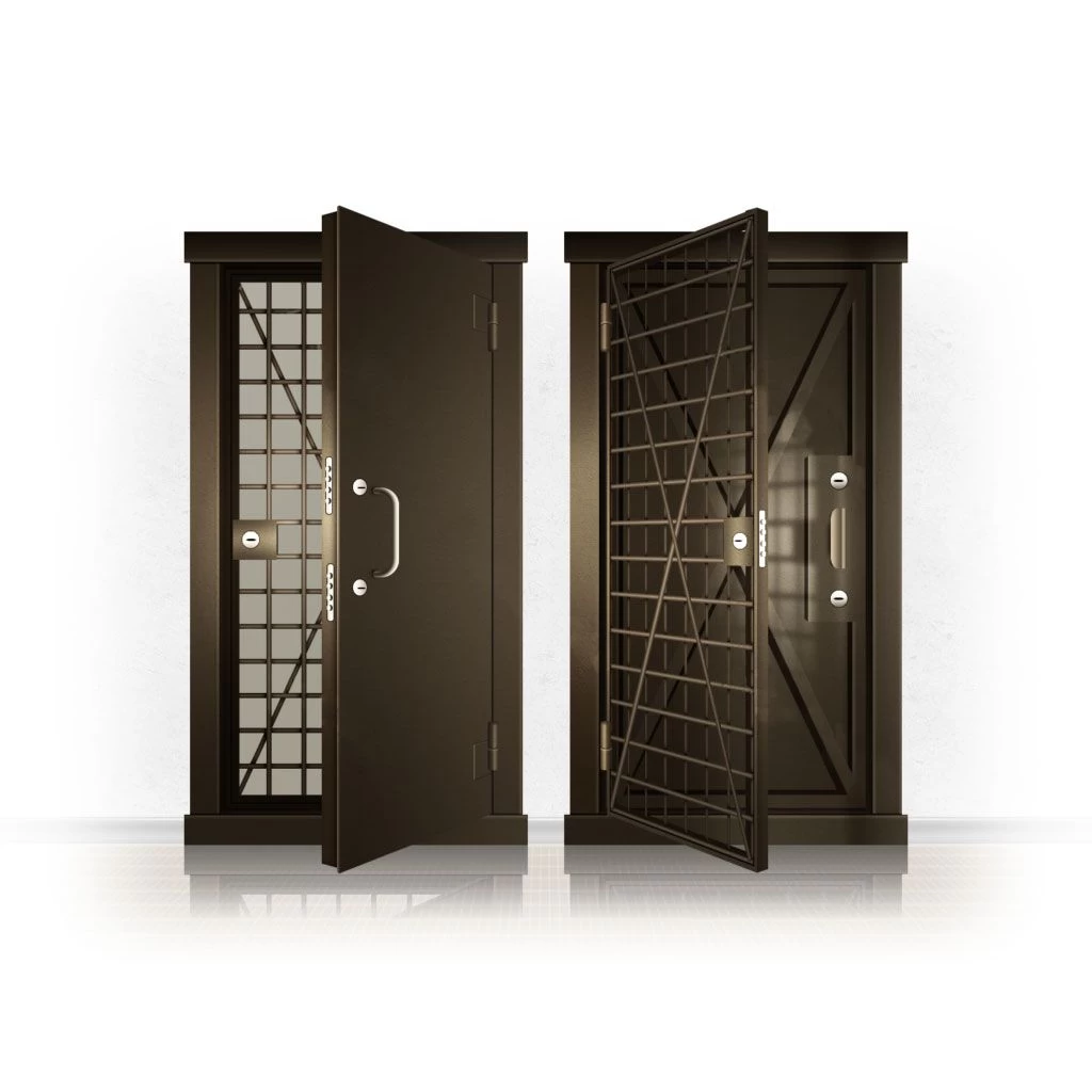 Металлические двери КХО и КХН представляют собой входные блоки, обладающие высоким уровнем взломостойкости и состоят из трех основных элементов: усиленного каркаса, сплошного металлического полотна и решетчатой двери. Дверной блок изготавливается из стального уголка 100*100 мм. Места крепления блока к стене цементируются и закрываются стальными наличниками шириной 40 мм. Крепеж заходит вглубь стены на 80 мм. В конструкции внешней створки монтируются ребра жесткости, для обшивки используется сталь толщиной не менее 3 мм. Внутренняя решетка изготавливается из прутка диаметром 16 мм. Размер ячеек решетки должен составлять не более 15 на 15 см. В точках пересечения прутья надежно приваривают друг к другу. В КХО и КХН необходимо поддерживать определенную температуру и влажность. Для этого внутреннее пространство глухой двери заполняется теплоизоляционным материалом, а по периметру двери приклеивается уплотнитель. Такие двери оборудуются замками с повышенным уровнем взломостойкости. Специализированные двери КХО и КХН в Курске могут быть оснащены сигнализацией, в конструкции могут быть проушины для навесного замка и элементами для опечатывания. Если идет речь о двери в комнату хранения оружия, в створке оборудуется окно для выдачи оружия и спец. средств, которое накрывается стальной дверцей.