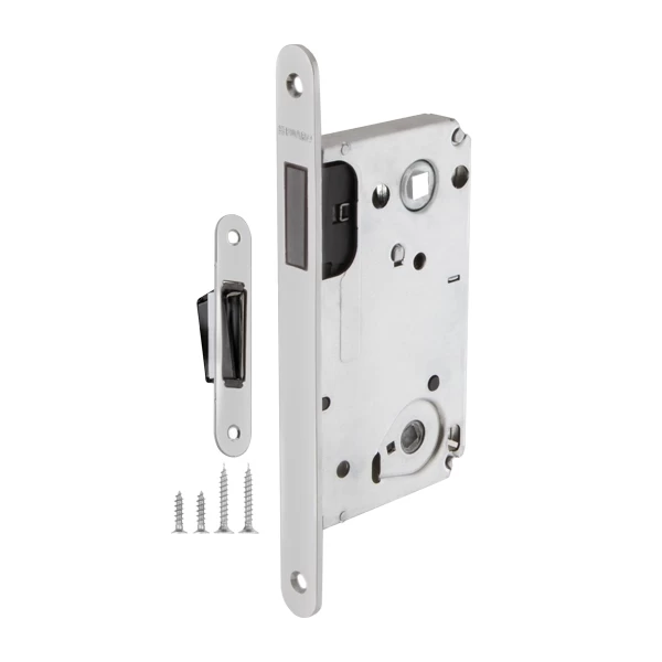 Бесшумная магнитная защелка Fuaro 5300-M-WC изготовлена в соответствии с требованиями ГОСТ 5089-2011. Предназначена для установки в деревянные межкомнатные и сантехнические двери, подходит для дверей левого и правого открывания. Корпус выполнен из стали с надежным гальваническим покрытием. Магнитный механизм обеспечивает бесшумность работы защелки. Защелка 5300-M-WC c усиленным блоком пружин имеет высший 4 класс надежности (250 000 циклов открывания/закрывания). Отверстия под стяжные винты находятся на расстоянии 38 мм. Размер межосевого расстояния - 90 мм. Возможна установка дверных ручек на стяжные винты для более прочного крепления. Цвет: хром. В комплектацию входят: ответная планка с магнитной вставкой и крепежная фурнитура в цвет изделия. Защёлка Fuaro 5300-M-WC изготовлена в соответствии с требованиями ГОСТ 5089-2011.
